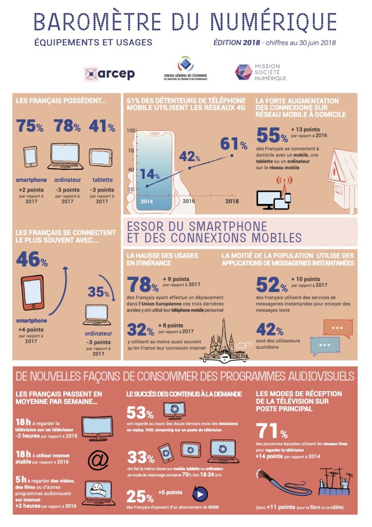 Voici ce qu’il faut retenir du baromètre du numérique réalisé par l’ARCEP en 2018 en France métropolitaine.